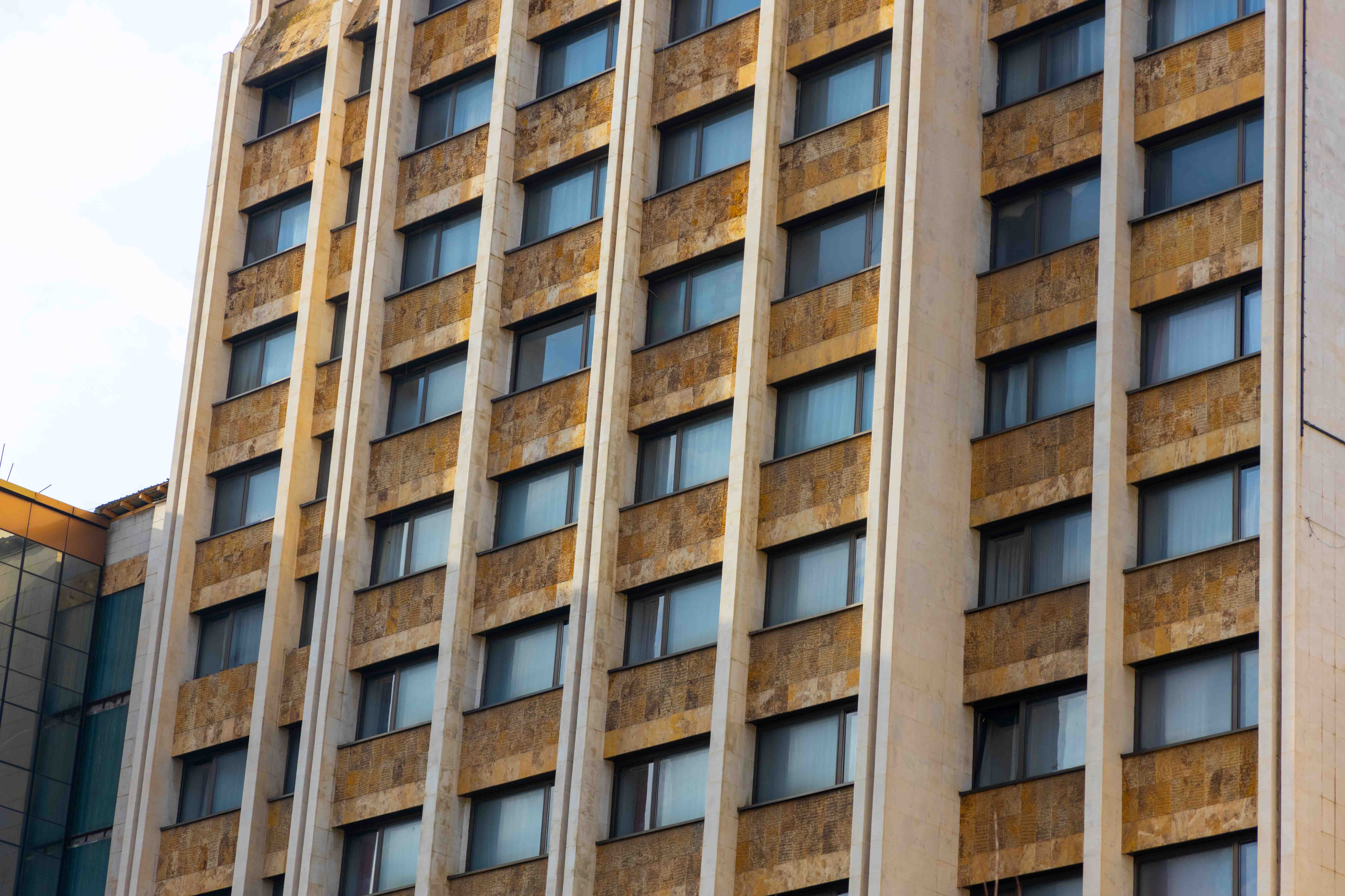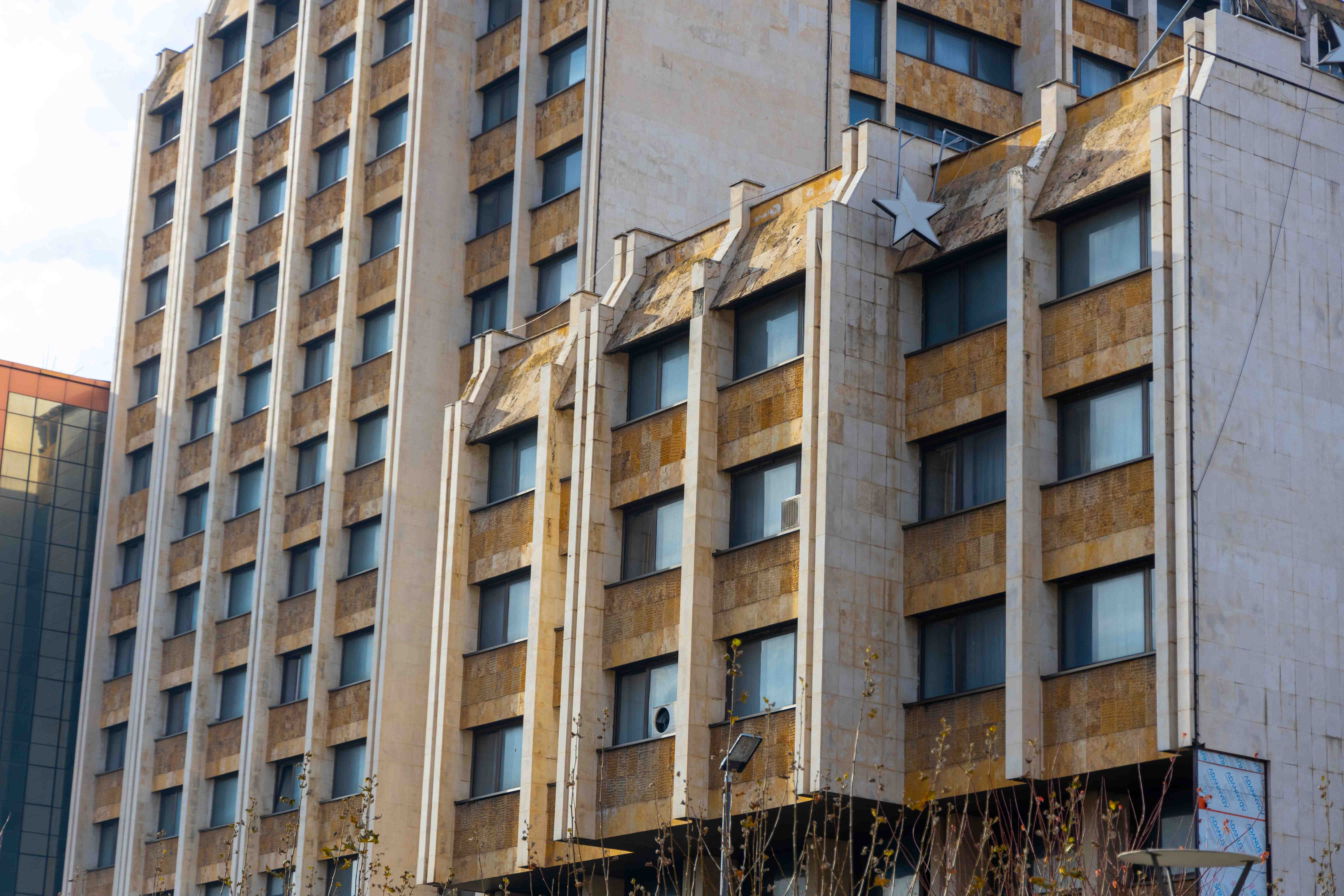 Located in the heart of the city, the Grand Hotel Prishtina stands out in the Prishtina skyline. The iconic marbled building was built between 1974-1978 by architects Bashkim Fehmiu, Dragan Kovačević and Miša Jevremović. A large building (around 32.000m2), the hotel has 350+ rooms of different sizes spread out over 13 floors. Figuring prominently in the public consciousness, the hotel has hosted many famous figures from international politics and the entertainment sector over the years. Embodying the recent history of Kosovo, the Grand Hotel Prishtina has witnessed political, social and cultural changes, the memory of which has woven into its hallowed halls.