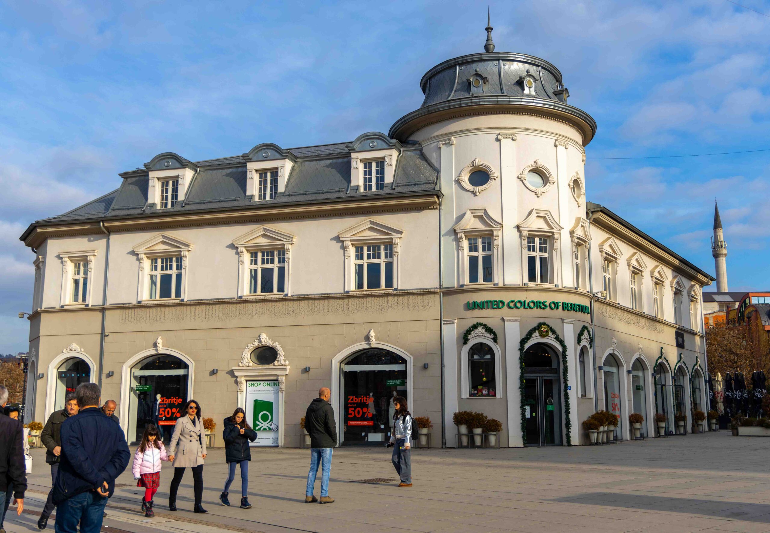 The life of this building on many levels portrays dramatic social and political fractures of the city which oftentimes have used the public space to make clear its identitarian struggles. Designed in 1927 by Andrija Kramer, it is considered as one of the few to survive the radical transformations of Pristina. Stylistically influenced by Neo-Renaissance, Neo-Baroque and Art Nouveau, the building changed its name and function several times. At first, it was called Hotel Nacional, and not only it was a guesthouse but a cinema too. During the Second World War, it was named Scanderbeg, while after the war it was known as Nova Jugoslavia. The last name by which the building is known is Hotel Union. Currently the building is owned and managed by the United Colors of Benetton and functions as a retail store.